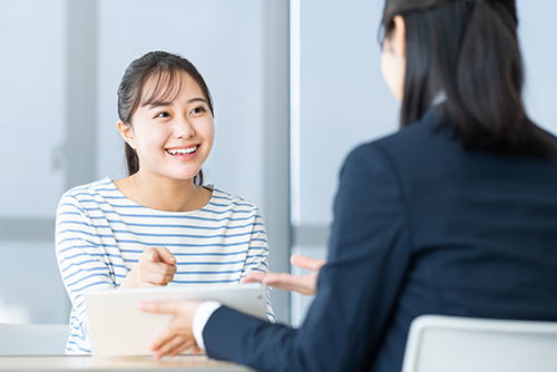 職業相談・受付時は際は、これまでのお仕事経験やご希望をヒアリング形式で丁寧にお伺いしています。スタッフがどんな業務に適しているか、これから何をやりたいか、どんなスキルを身につけたいか等を聞きアドバイスをさせてもらいます。希望職種や条件だけでなく、企業と個人をより良いマッチングができるように丁寧に応対していきます。
